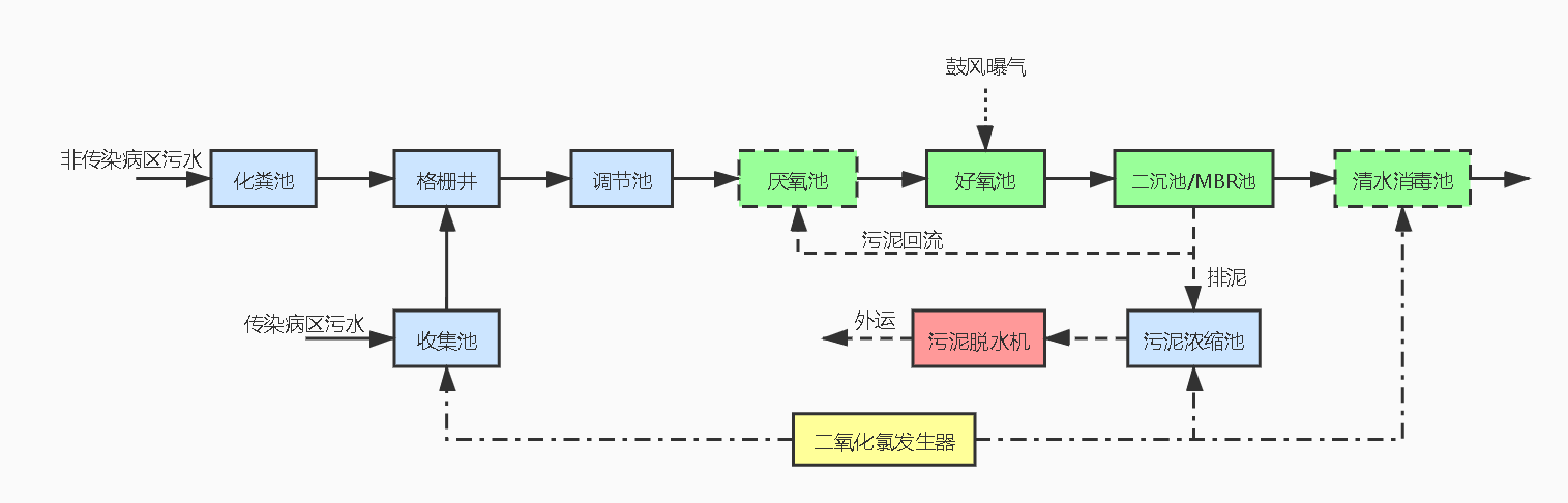 医疗废水处理流程如下: